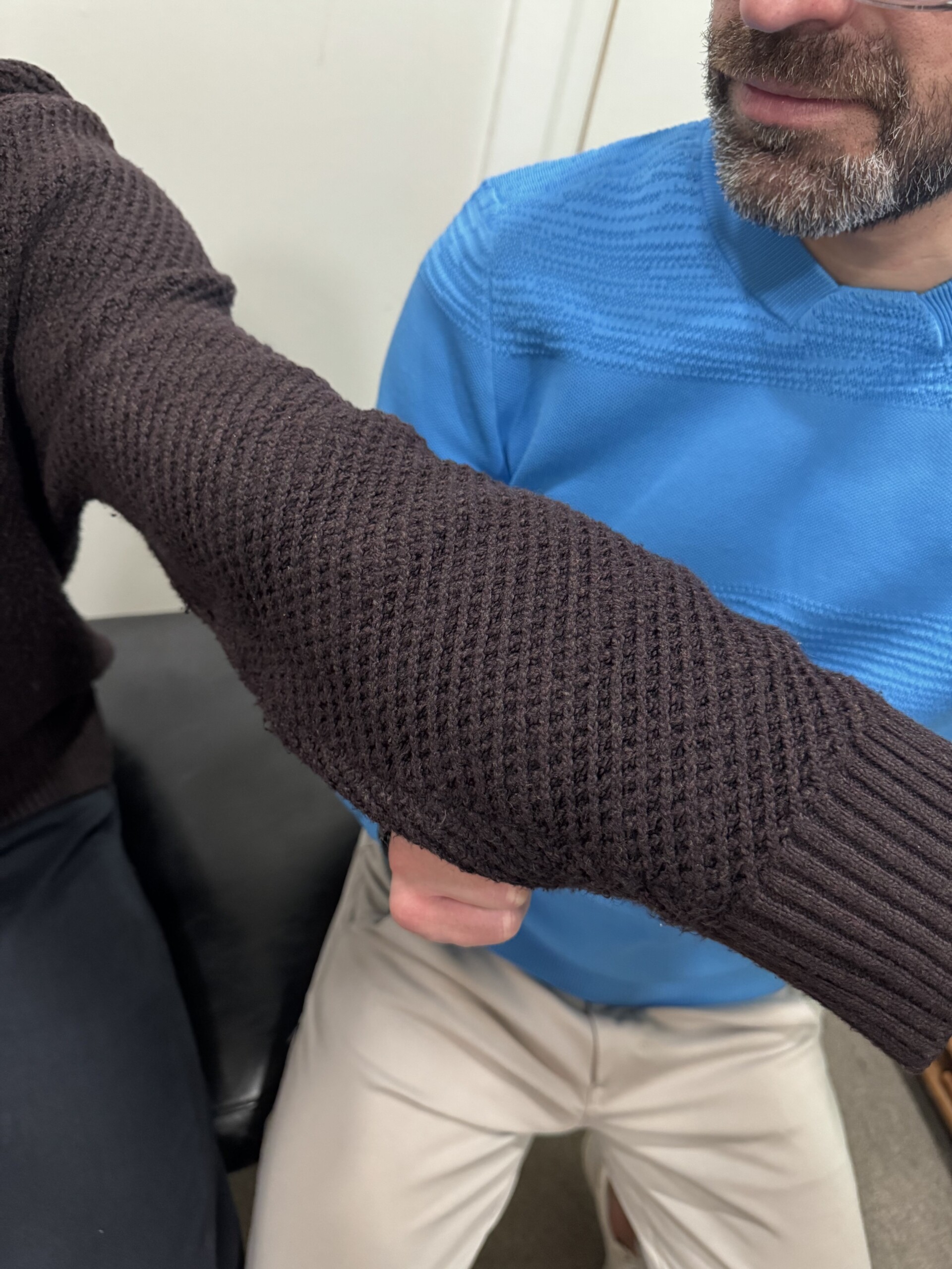 The most common elbow maladies come from overuse or repetitive motions that cause pain on the inside of the elbow, aka golfer’s elbow (medial epicondylitis), or on the outside of the elbow, aka tennis elbow (lateral epicondylitis). Elbow issues generally result in a very identifiable weakness in the surrounding muscle groups. Gentle adjusting can help restore normal strength and align the tissues for proper healing. We may also utilize therapy or taping to further speed healing for these common irritations.